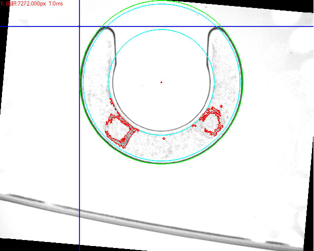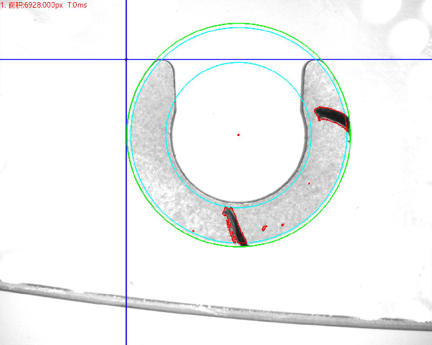 底部蓝光检测不良品分析图:NG 不良原因:压伤